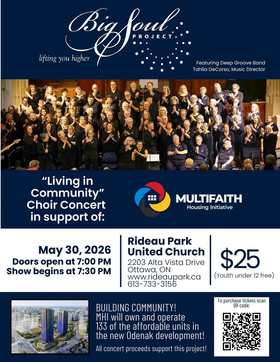 Big Soul Project Community Choir (BSP) is one of Ottawa’s largest community choirs, whose 120+ members share songs of hope, love and peace to promote a sense of joy and empowerment. BSP fuses the vocal energy of a large choir with the smooth sound of its talented house band, Deep Groove.